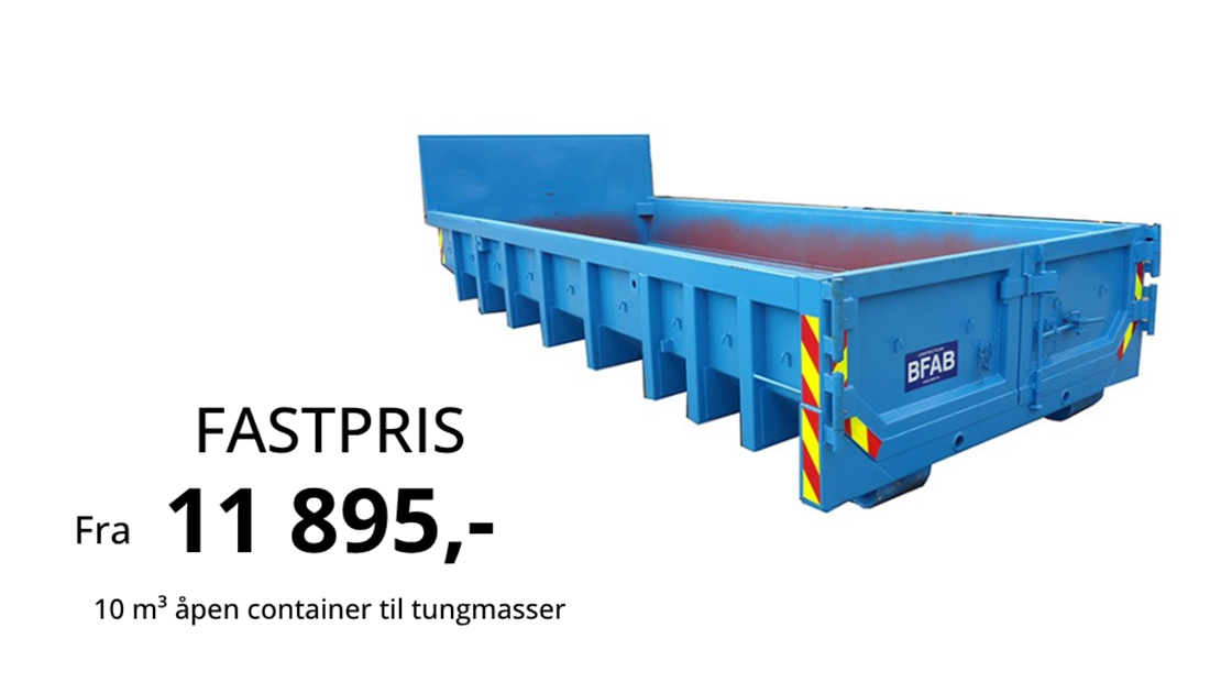 10 m3 åpen container til fastpris fra kr 11 895,- ink. mva.